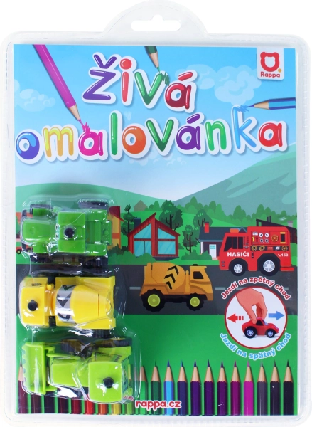 - 3 mini-auto’s met terugtrekmechanisme, kleurplaten met bouwthema