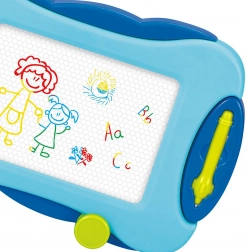 Dit magnetische tekenbord is de ideale tool voor kleine kunstenaars. Dankzij de meegeleverde magnetische pen kunnen kinderen veilig en zonder inkt of potloden naar hartenlust tekenen. Met een beweging van de schuifgum veeg je tekeningen eenvoudig en snel weg, waarna het bord direct klaar is voor nieuwe ideeën.
