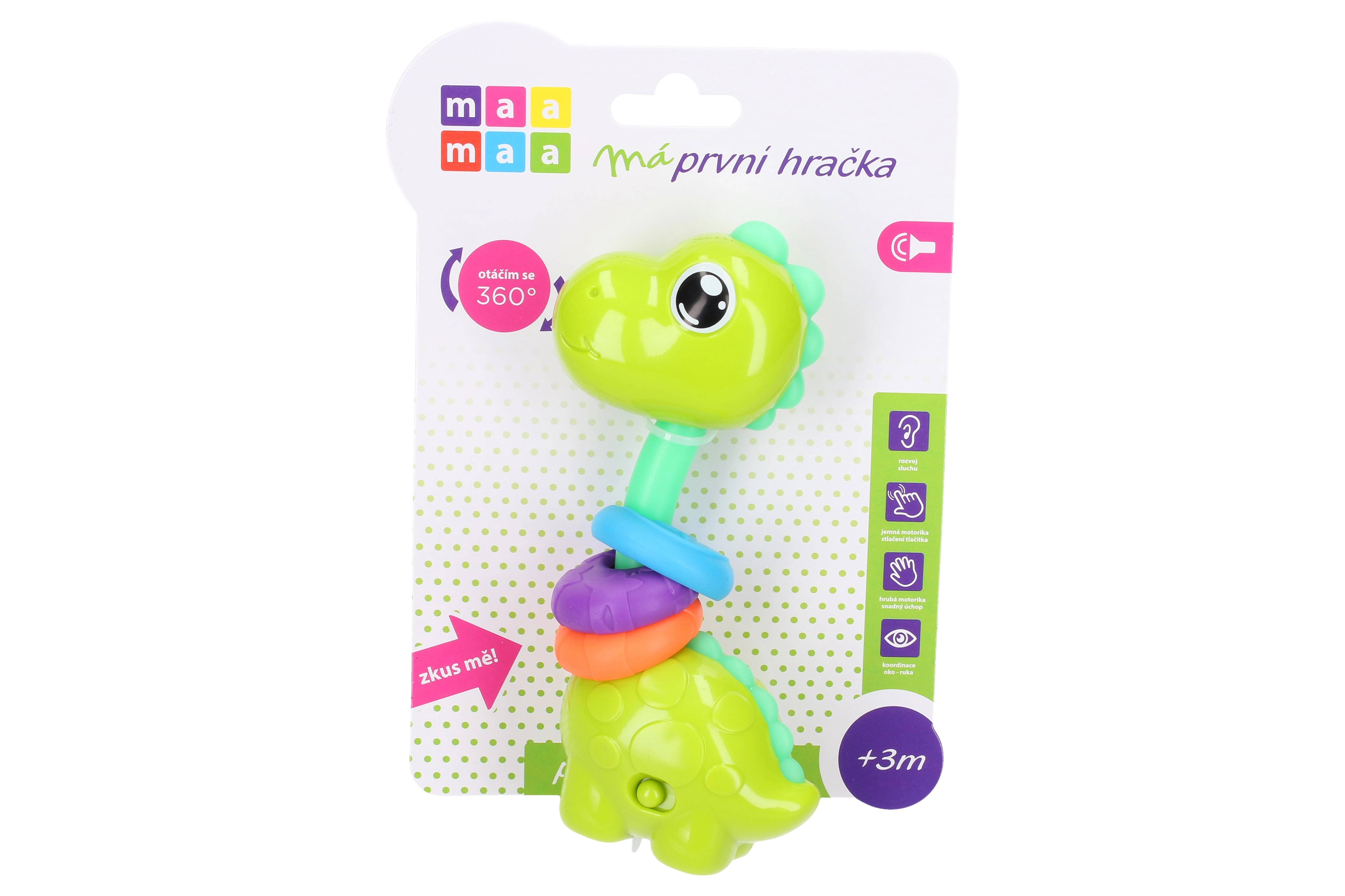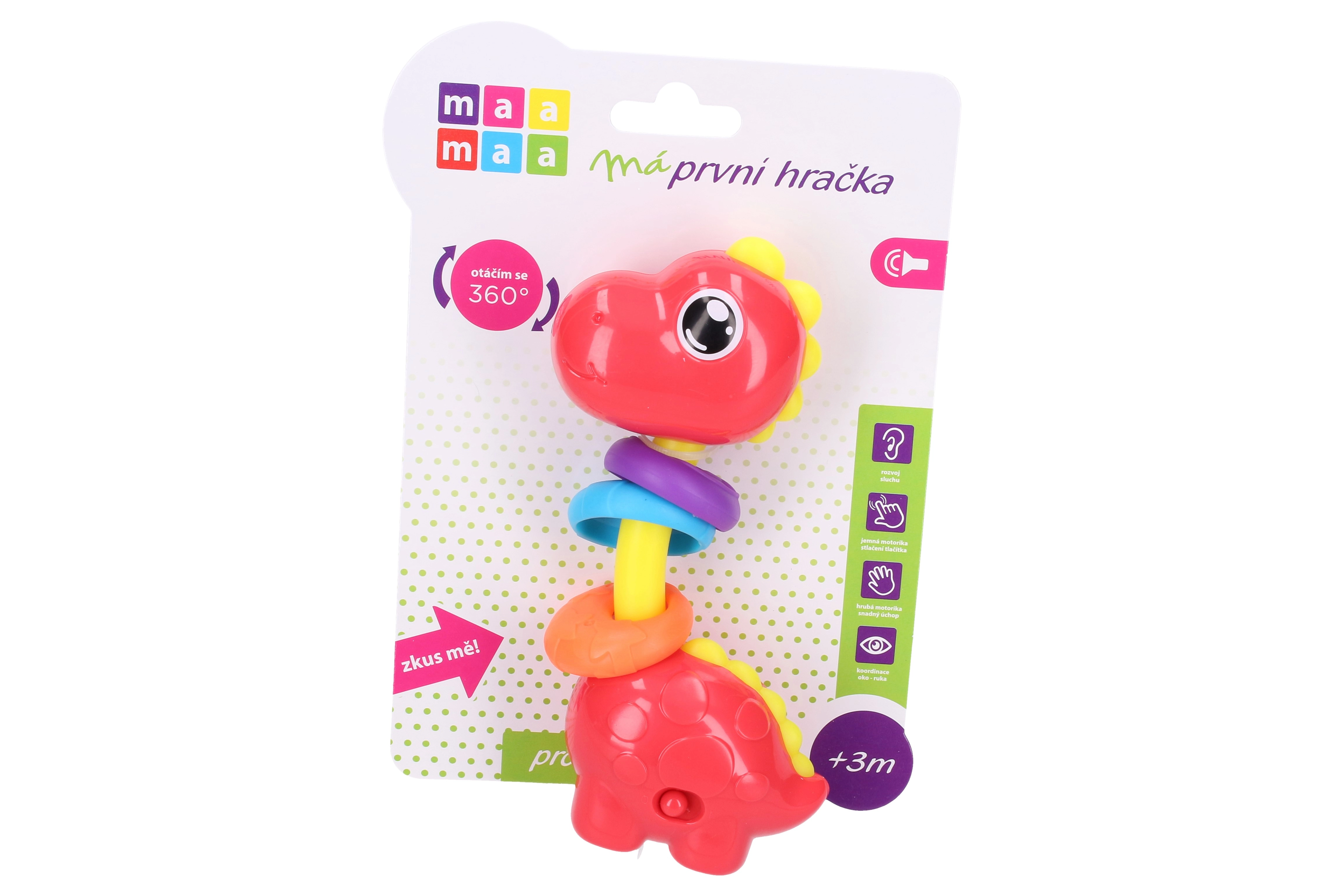 Maamaa Dino met effecten is het perfecte speelgoed dat indruk maakt met licht- en geluidseffecten, geactiveerd door het naar beneden drukken van het hoofd.