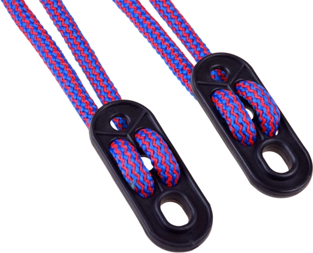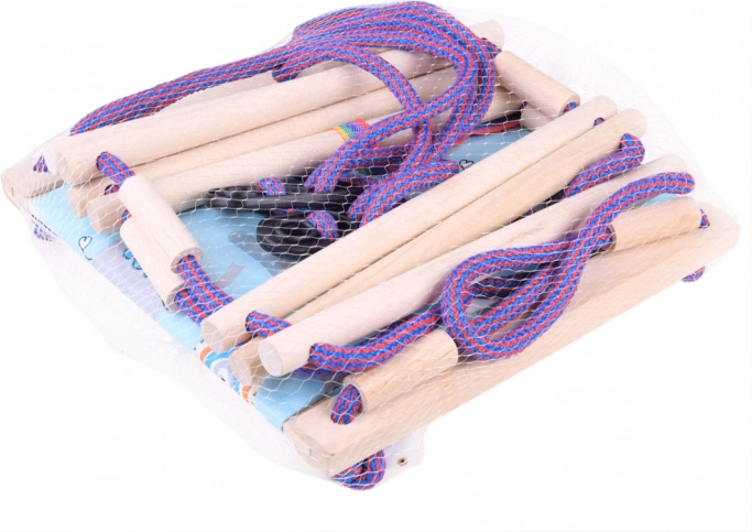 De touwen zijn afgewerkt met kunststof haken, waardoor de schommel snel aan of van de haken kan worden bevestigd.