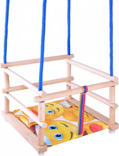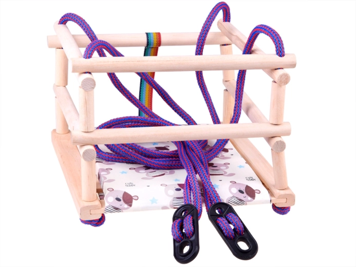 De veiligheid wordt gewaarborgd door een veiligheidsgordel die het kind beschermt tegen uit de schommel vallen.