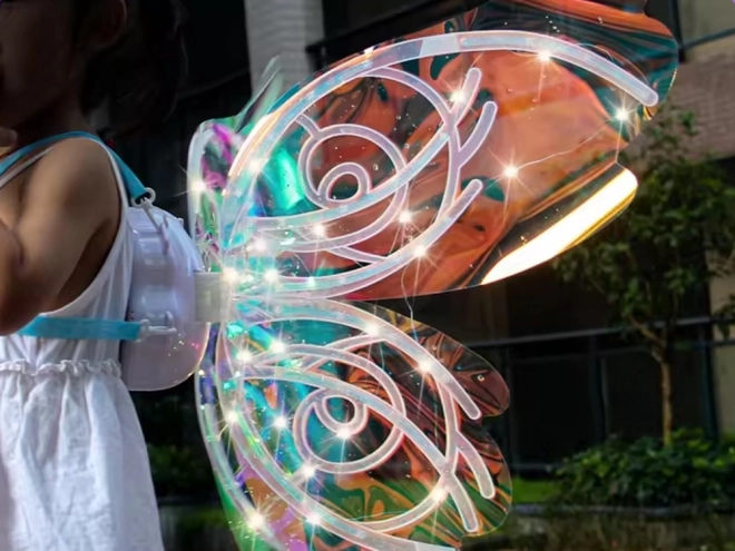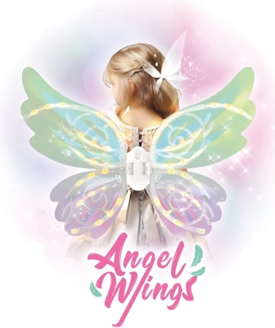 De vleugels zijn uitgerust met LED-verlichting die een magisch effect creëert en kinderen zich als in een sprookje laat voelen.