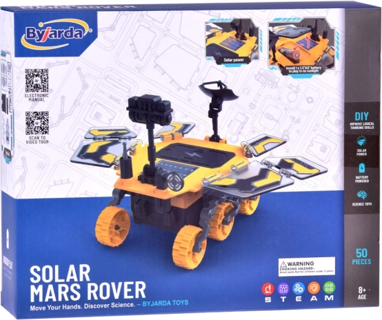 Deze bouwset bevat alles wat nodig is om het model van het Marsvoertuig te bouwen. Dankzij het zonnepaneel beweegt het model zonder dat er batterijen nodig zijn, wat kinderen toont hoe zonne-energie praktisch kan worden gebruikt. Het bestaat uit 50 onderdelen van hoogwaardige kunststof, die duurzaamheid en een lange levensduur van het model garanderen.