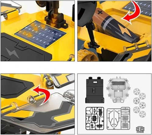 De montage is ontworpen om intuïtief en leuk te zijn, wat logisch denken en creativiteit bevordert. Het voltooide model kan bewegen en manoeuvreren, waardoor kinderen niet alleen plezier hebben van hun eigen creativiteit, maar ook leren over de werking van een zonne-energieaandrijving.