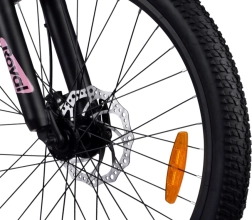 Deze fiets is uitgerust met schijfremmen voor precieze controle en veilig stoppen.