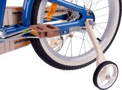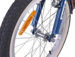 Voor veilig stoppen zorgen aluminium V‑brakes met hendels die zijn afgestemd op kinderhanden. Zichtbaarheid wordt gewaarborgd door reflectoren voor, achter en in de spaakwielen. 2.125" banden met betrouwbare grip kunnen verschillende ondergronden aan, terwijl de kettingkast en metalen spatborden de kleding beschermen. Voor de eerste kilometers zijn zijwieltjes en een praktische rieten mand voor kleine spullen inbegrepen.