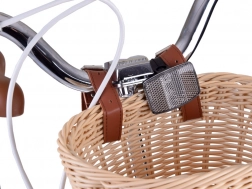 De rieten mand aan het stuur is ideaal voor kleine spullen onderweg, terwijl metalen spatborden in retrostijl en een kettingkast beschermen tegen vuil en opspattend water.