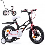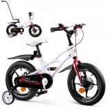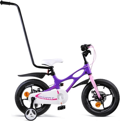 De lichte kinderfiets RoyalBaby Space Shuttle 14 is ideaal voor kleine beginners van 2 tot 5 jaar. Hij biedt een magnesium frame voor een laag gewicht, dubbele schijfremmen voor zeker remmen en zijwieltjes en een afneembare duwstang voor veilig leren. Het comfort wordt aangevuld met verstelbaar stuur en zadel, een volledige kettingkast en reflectoren voor betere zichtbaarheid.