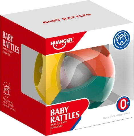 Vrolijke rammelbal voor de allerkleinsten die de zintuiglijke ontwikkeling, grijpreflex en oog-handcoördinatie stimuleert. Licht, gemakkelijk vast te houden en veilig dankzij afgeronde randen. Binnenin zit een klein balletje dat bij beweging aangenaam rammelt, en aan de zijkanten zitten openingen in de vorm van geometrische figuren voor spelenderwijs ontdekken. Geschikt vanaf 0 maanden, met CE-certificering en volgens norm EN 71.