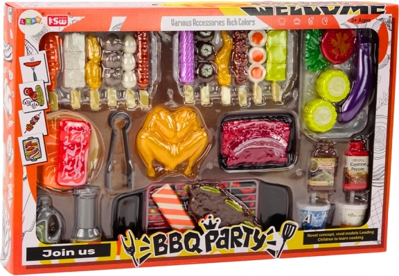 Ontdek de magie van barbecueën met deze kinderset, inclusief een realistische grill met vlameffect en een brede selectie etenswaren – van spiesjes en worsten tot steaks, maar ook vis, garnalen en groenten. Accessoires zoals ketchup, mosterd, olie en kruiden geven het spel extra authenticiteit, zodat kinderen zelf gastheer kunnen zijn van hun eigen BBQ-feest.