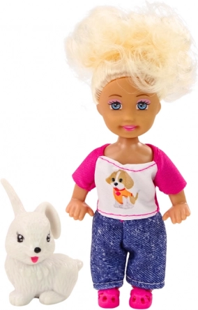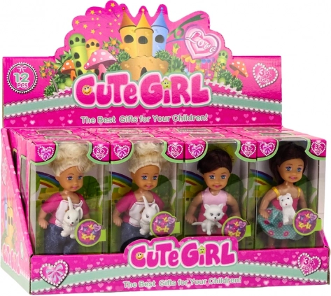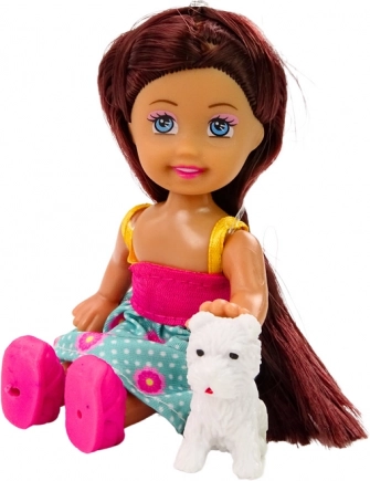 Deze kleine pop met een dierenvriendje zal elk kind dat van poppen en dieren houdt blij maken. Het lange haar is gemakkelijk te kammen en te stylen, en de kleurrijke kleding brengt extra plezier en afwisseling in het spel. Dankzij de compacte afmetingen zijn de pop en het diertje eenvoudig mee te nemen en perfect om thuis en onderweg mee te spelen.