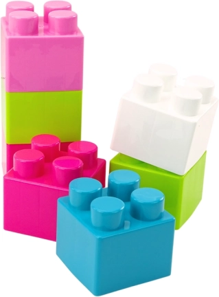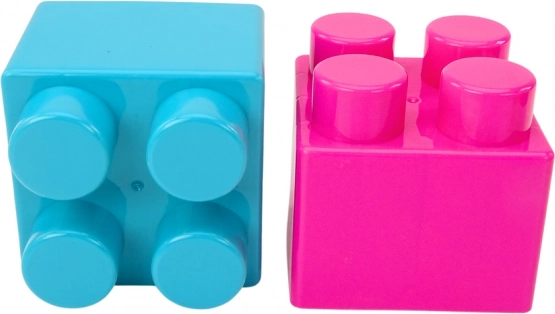 Deze set grote blokken is ideaal voor de eerste bouwervaringen thuis en onderweg. Delen in levendige kleuren (groen, roze, wit, turquoise) klikken gemakkelijk in elkaar en stimuleren kinderen tot creativiteit en zelfstandig spel. Dankzij de grote afmetingen liggen ze prettig in de hand en zijn ze ook geschikt voor jongere kinderen.