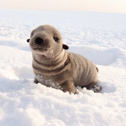 De pluchen zeeleeuw heeft realistische details en kleuren die doen denken aan een echte zeeleeuw.
