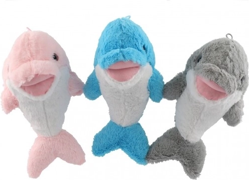 Pluchen dolfijnen zijn beschikbaar in verschillende kleuren. Kies uit roze, blauw en grijs, afhankelijk van de voorkeuren van uw kind.