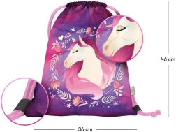 De set bevat ook een complete selectie schoolbenodigdheden, zoals een etui, schriftenmap en broodtrommel. Alle onderdelen hebben een gecoördineerd ontwerp met paardenmotief en zijn praktisch voor dagelijks gebruik.