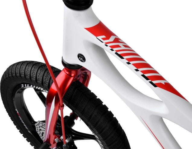 De magnesiumconstructie verlaagt het gewicht van de fiets, maakt het sturen makkelijker en verhoogt het comfort van het kind tijdens het rijden en manoeuvreren.