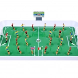 - Complete set voor direct spelplezier – 22 spelers, speelveld, 2 doelen, bal, scorebord, vlaggenmasten en stickers.