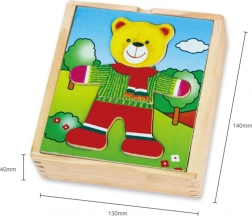 Dit houten educatieve speelgoed biedt de mogelijkheid om zes afbeeldingen van een schattige beer in verschillende stemmingen en kostuums samen te stellen. De belangrijkste voordelen van dit speelgoed omvatten niet alleen plezier, maar ook stimulatie van handmatige vaardigheid en logisch redeneren samen met het leren herkennen van emoties.