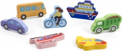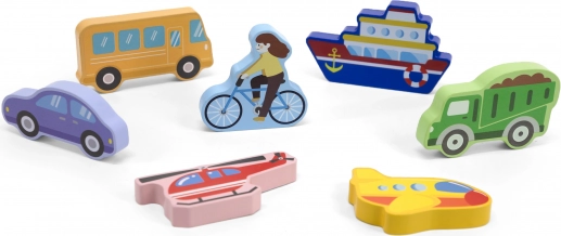 De VIGA houten puzzel met vervoersmiddelen is een ideale keuze voor een leuk en tegelijk leerzaam spel. Kinderen hebben als taak de kleurrijke stukjes van de vervoersmiddelen aan de juiste plaatsen op het bord toe te wijzen, waardoor ze nauwkeurigheid van beweging en coördinatie oefenen. De afzonderlijke stukjes kunnen ook dienen als losse figuurtjes voor extra spel.