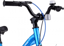 Voor veilig stoppen zorgen de voorste velgrem en de achterste schijfrem met ergonomische hendels voor kinderhanden. Verder aanwezig: reflectoren voor, achter en in de wielen voor uitstekende zichtbaarheid, plus spatborden, bel en standaard. Het zadel is comfortabel, van foam en in hoogte verstelbaar, het stuur is breed en stabiel voor een zekere grip.