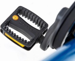 De getande riem hoeft niet gesmeerd te worden, is stil en schoon – geen vuile handen of kleding. De vrijloop maakt achteruit trappen zonder aandrijving mogelijk.