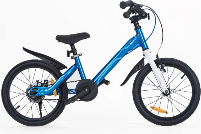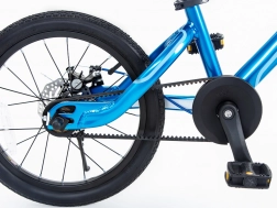 De ROYALBABY MARS 16" is een kinderfiets ontworpen voor rijplezier en maximale veiligheid. Dankzij het aluminium frame en de voorvork weegt hij slechts 7,25 kg, wat het sturen en dragen vergemakkelijkt. De riemaandrijving is stil, schoon en onderhoudsvrij – geen olie of vieze broekspijpen. Aluminium velgen met 20 spaken per wiel en naven met kogellagers zorgen voor een soepele en duurzame rit.