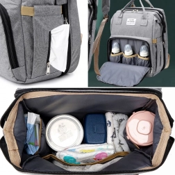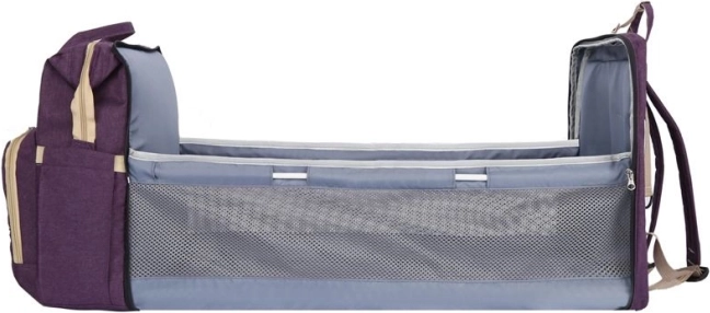 Multifunctionele rugzak voor de moderne mama, die zich aanpast aan een hectische levensstijl. Met een praktische indeling van vakken biedt hij opbergruimte voor meerdere flessen met voeding of drank voor het kind, een vak voor vochtige doekjes dat te gebruiken is zonder de hele verpakking te verwijderen, en één hoofdvak voor het opbergen van grotere items. Deze rugzak is veelzijdig en biedt de mogelijkheid voor een dutje voor een peuter onderweg in een mini-reiswieg. Dankzij het multifunctionele design kan de rugzak ook worden gebruikt als tas of trolleytas.