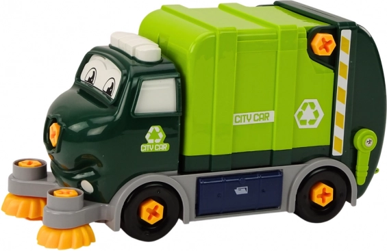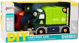 Deze getekende doe-het-zelf recyclagewagen laat kinderen kennismaken met de wereld van machines en mechanica. Met de veilige speelgoedboor, schroevendraaier en verwisselbare opzetstukken kunnen kinderen de wagen zelf uit elkaar halen en weer in elkaar zetten, waarbij ze fijne motoriek, logisch denken en geduld trainen. De voorste borstels draaien tijdens het rijden en zorgen samen met de meegeleverde vuilnisbak voor een authentieke simulatie van straatreiniging.