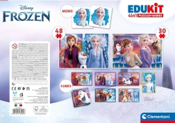 Ontdek de magische wereld van FROZEN met deze veelzijdige spelenset die de fijne motoriek, concentratie en het geheugen stimuleert. Twee puzzels met hetzelfde eindformaat van 24 × 17 cm, maar met een verschillend aantal stukjes, laten kinderen de moeilijkheidsgraad stap voor stap verhogen. Het memoryspel traint het visuele geheugen en de 6 kunststof blokken bieden een extra manier van bouwen met geliefde motieven.