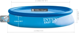 Geniet volop van de zomer met dit ruime bovengrondse zwembad met een diameter van 396 cm en een hoogte van 84 cm. Dankzij de snelle installatie is het zwembad binnen 10 minuten klaar om te vullen, het grote volume van 7.290 l biedt voldoende ruimte voor verfrissing voor het hele gezin en de duurzame constructie met opblaasbare bovenrand zorgt voor comfort en stabiliteit.
