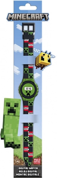 Ontdek een leuke en functionele digitale horloge voor jonge fans van MINECRAFT. Dankzij het overzichtelijke display leren kinderen eenvoudig de tijd lezen en het Creeper-motief op de wijzerplaat en band vergroot het plezier van dagelijks dragen. De horloge is ultralicht (23,3 g) en zit perfect op een kinderpols.