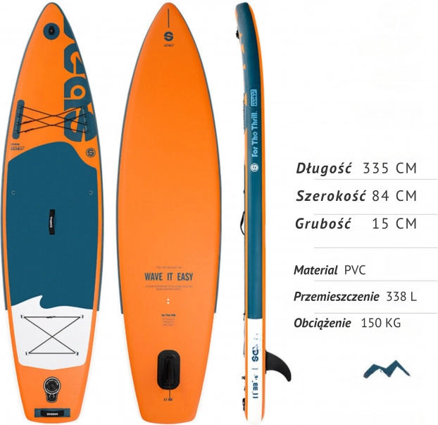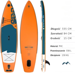 Het opblaasbare paddleboard BEACH DOLPHIN is een uitstekende keuze voor recreatieve tochten, fitness en de eerste golven. De brede basis en het hoge volume van 338 l zorgen voor comfortabel en stabiel peddelen, ook voor langere of beginnende gebruikers. De hoogwaardige constructie van slijtvast PVC en de 15 cm dikte bieden stijfheid, veiligheid en betrouwbare prestaties op vlak water en lichte golven.
