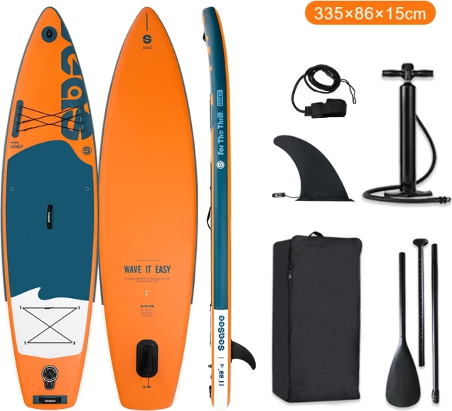 Doordachte details verhogen het comfort op en naast het water: een antislip EVA-dek voor een zekere stand, een hogedrukventiel voor snel oppompen tot de aanbevolen 15 PSI, een afneembare vin voor betere koersstabiliteit en stevige nylon handgrepen voor eenvoudig dragen.
