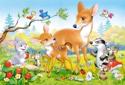 Deze grootformaatpuzzel is perfect voor de eerste puzzeluitdagingen. Dankzij de grotere stukken kunnen kinderen ze gemakkelijk hanteren en leren ze eenvoudig vormen en kleuren herkennen. Na het leggen krijg je een prachtige afbeelding met een hertje die elke kinderkamer zal opvrolijken.