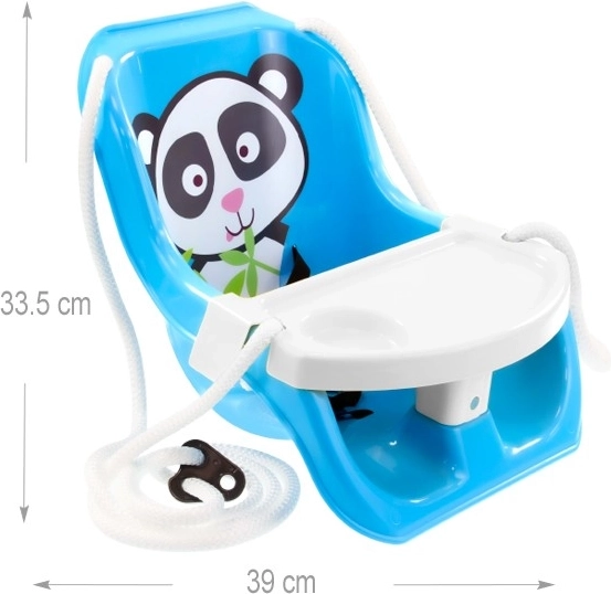 Kinderschommel met pandamotief, ontworpen voor zeer jonge kinderen, is uitgerust met een afneembare tafel, die de veiligheid van het kind garandeert en geweldig entertainment biedt.