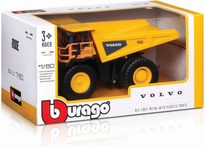Metalen model vrachtwagen van Bburago pronkt met een nauwkeurig ontwerp en realistische details van de Volvo R100E. Ideaal voor verzamelaars en fans van bouwmachines.