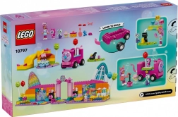 Gabby's danszaal gaat niet alleen over disco! Het bevat Gabby, Daniel Kat, Elf Kat, Zee Kat en veel muzikale accessoires - waaronder de partybus met DJ-console, een draaibare dansvloer, gitaar, twee microfoons en een glinsterende discobal. De ruimte is klaar voor eindeloos plezier! De set bevat ook ballonnen, rolschaatsen, popcorn en twee glazen vol sorbet in de ontspanningszone, evenals een katapult en blikjes voor een omverwerp spel. De set wordt gecompleteerd met een taart voor Gabby, cadeaus en een glijbaan. De set bevat een groot startstuk voor eenvoudig bouwen voor kinderen. De kleurrijke handleiding met afbeeldingen biedt overzichtelijke instructies.