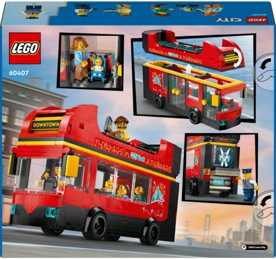 De rode dubbeldekkerbus uit de LEGO City serie biedt kinderen authentiek plezier op twee dekken. Draai de bestemmingsrol en rijd naar de haven, het centrum, het museum of het park. Dankzij vijf minifiguren, waaronder een baby in een kinderwagen, en accessoires zoals een microfoon, telefoon en camera, wordt het rollenspel nog rijker.