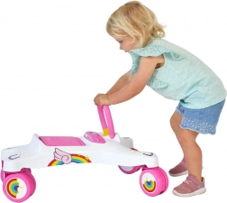 De schattige loopfiets met eenhoornthema is een geweldige kameraad voor dagelijks spel en het trainen van stabiliteit. Dankzij de 360° zwenkwielen draait hij gemakkelijk op de plaats en rijdt een kind er soepel mee door smallere ruimtes. De robuuste kunststof constructie biedt steun en zekerheid, terwijl de claxon voor extra plezier zorgt.