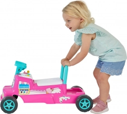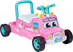Schattige roze loopauto in de stijl van een ijskar die motoriek en fantasie ontwikkelt. Biedt muziek en knipperende lichtjes, claxon en stuur, opbergruimte onder de zitting en een achterste handgreep als steun bij de eerste stapjes.