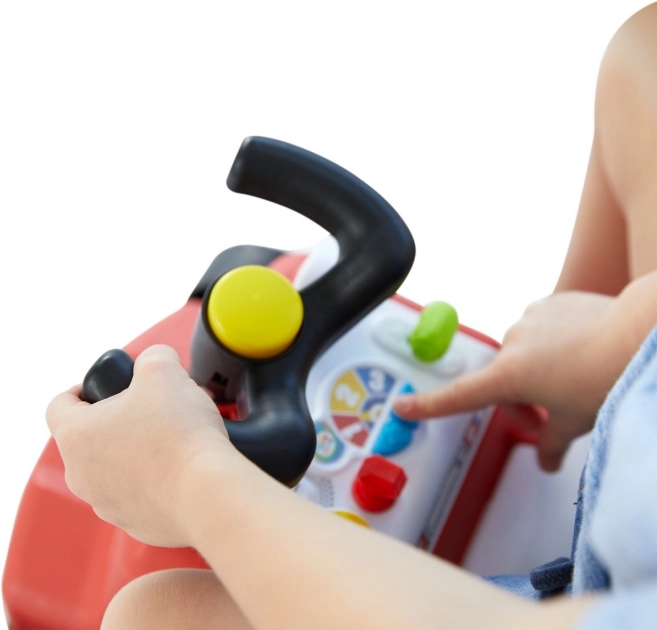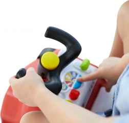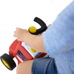 Kleurige bedienelementen en de claxon op het stuur stimuleren de fijne motoriek en zintuiglijke waarneming en maken van elke rit een avontuur.