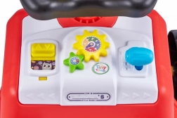 Het stuur met claxon en kleurige bedienelementen stimuleert fantasierijk spel en de fijne motoriek. De achterste handgreep dient voor kleinere kinderen als steun bij het leren lopen, oudere kinderen waarderen het rijden door zich met de voetjes af te zetten.
