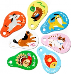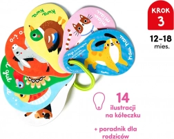 Stevige kaartjes, geschikt om op te hangen, ondersteunt de ontwikkeling van spraak en zintuigen