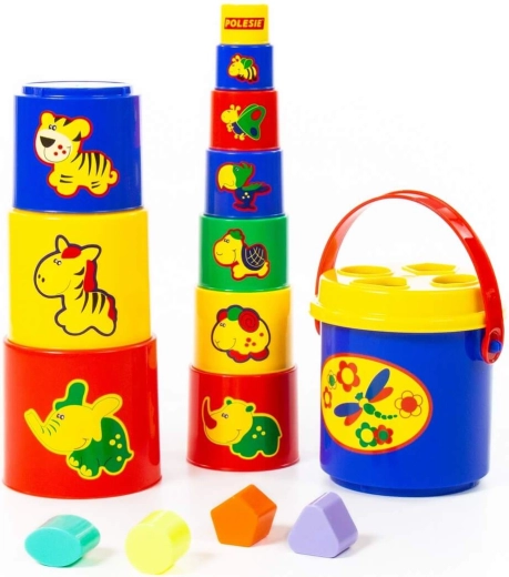 Dit speelgoed is een geweldige metgezel voor de allerkleinsten en leert hen spelenderwijs met behulp van spel en afbeeldingen nieuwe dieren, kleuren en vormen. Bovendien kan de piramide na het spelen eenvoudig worden opgeborgen in het meegeleverde emmertje.