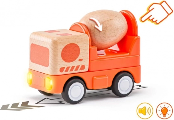 Houten betonmixer zal kleine bouwers verrassen met zijn realistische geluiden en lichteffecten. Ideaal voor kinderen vanaf 18 maanden, biedt het plezier en vaardigheidsontwikkeling.