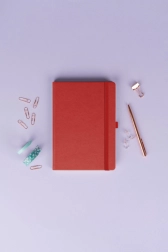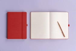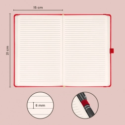 Notitieboek in een prachtige rode kleur met gelijnd formaat van 15 x 21 cm biedt een perfecte combinatie van klassiek en elegant. Ideaal voor personalisatie met bedrijfslogo’s dankzij de fijne oppervlaktestructuur.