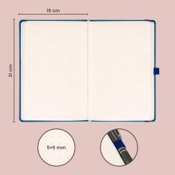 Ontdek de perfecte combinatie van klassiek en elegantie met onze blauwe gestippelde notitieboek. Dit notitieboek met afmetingen 15 x 21 cm is ontworpen met oog voor praktische bruikbaarheid én stijl. Het oppervlak is gemaakt om bedrijfslogo’s eenvoudig te kunnen blinddrukken, waardoor het een ideale keuze is voor zowel professioneel als persoonlijk gebruik.