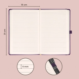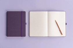 Gelijnd notitieboek Aprint Neo in paarse kleur biedt een combinatie van klassiek en elegant. Het oppervlak is niet alleen zeer gewild, maar maakt ook eenvoudig blinddrukken van bedrijfslogo’s met een fijne structuur mogelijk.