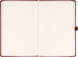 Dit gestipte notitieboek heeft een elegant wijnrood design dat geschikt is voor dagelijks noteren en als stijlvol accessoire op het bureau.