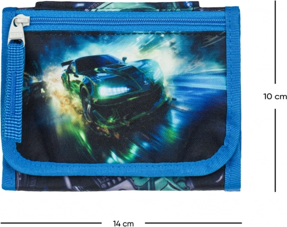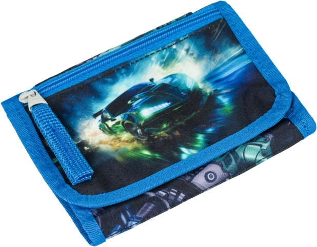 Laat je racepassie zien met een portemonnee die een raceauto motief op de voorkant heeft.